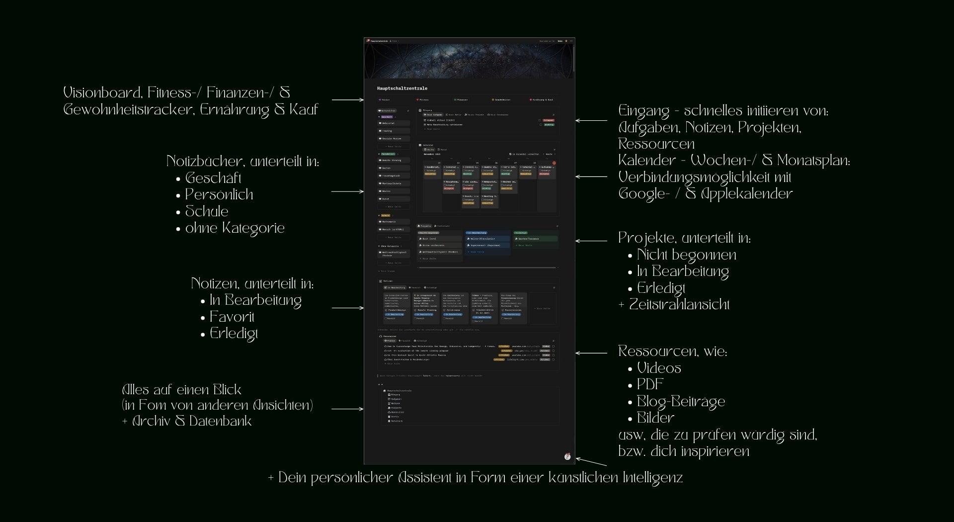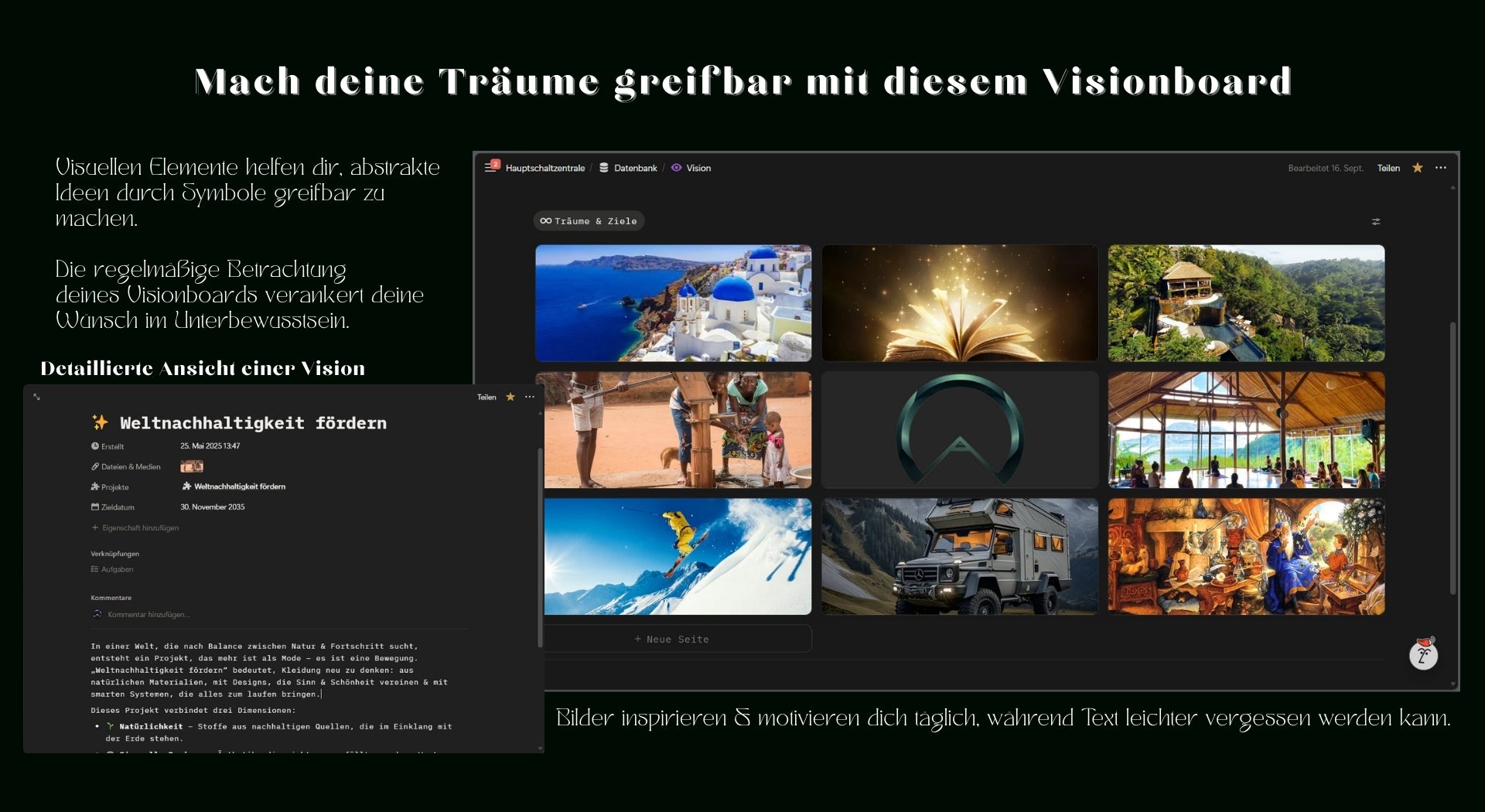 Ich investiere viel Kraft in leicht verständliche Erklärvideos, die du auf meinem Youtube-Kanal unter der Playlist "TRAUMFAENGER ORGA - Notion" findest.