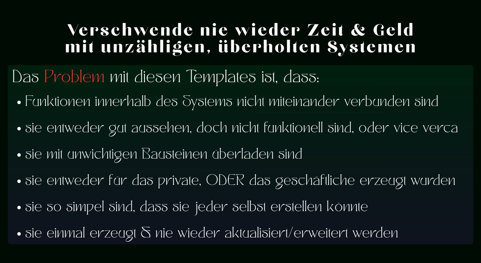 Du zahlst 1 mal & danach gehört dir das Template für immer. Keine Abos, keine versteckten Gebühren, keine laufenden Kosten. Nur 1 Kauf & lebenslanger Zugriff + Updates.